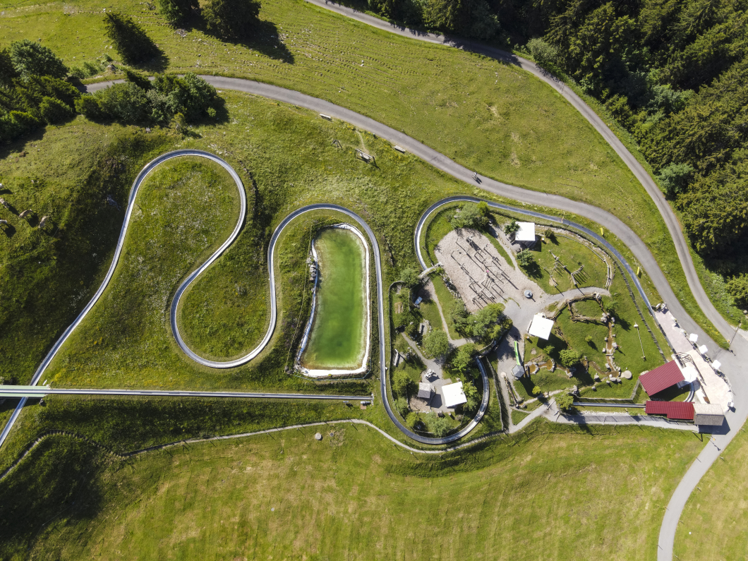Kurvenerlebnisse für Jung und Alt gibt es auf der 660 m langen Sommerrodelbahn direkt beim Berglodge Restaurant Ristis und rund um den Globis Alpenspielplatz.