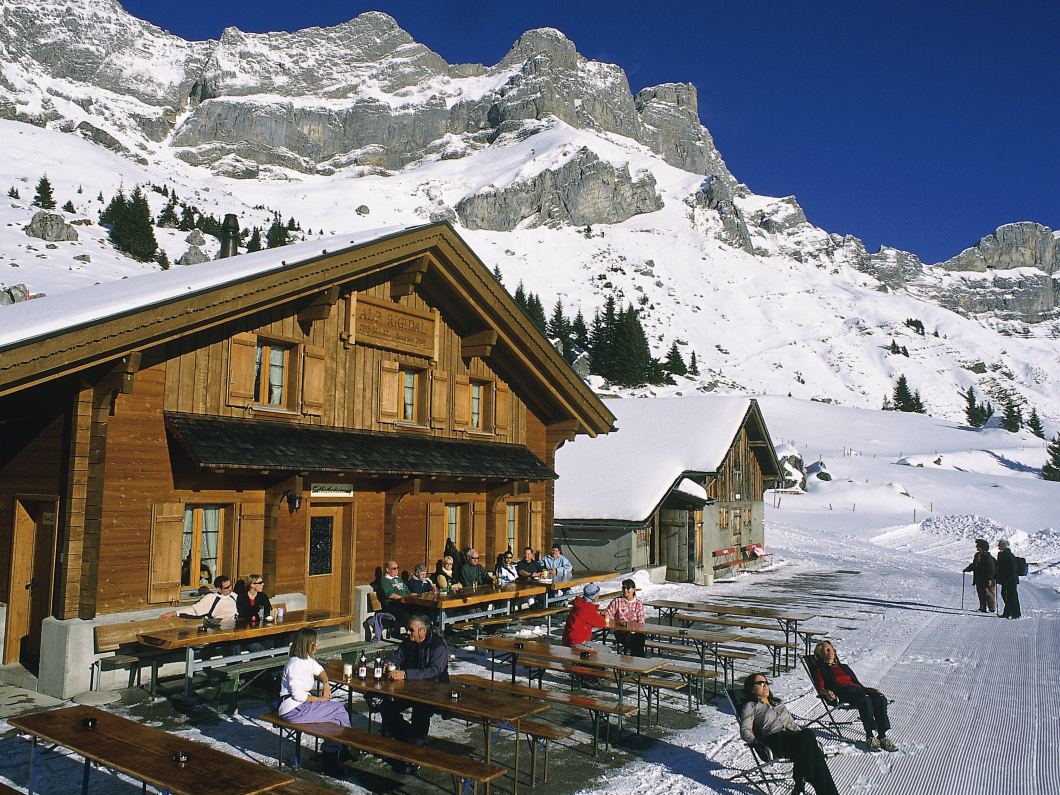Das Älplerbeizli Rigidal ist im Sommer und im Winter bei guten Bedingungen in einer halben Stunde zu Fuss von Ristis erreichbar.
